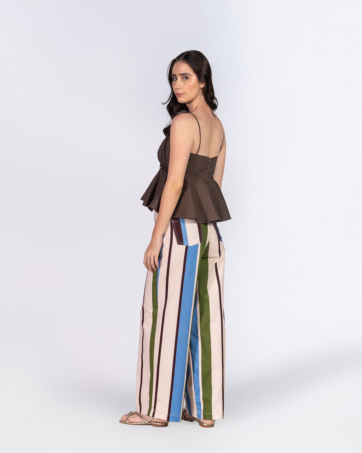 Nuestro Jean Block en una paleta de azul, verde y vino destaca por su print en líneas y su combinación de color. En denim ligero, se siente cómodo y fácil de llevar. De tiro alto y silueta straight, tiene bolsillos adelante y atrás, cierre con cremallera y botón. La ubicación de las líneas puede variar en cada pantalón, por lo que cada pieza tiene un patrón único. Un jean que arma el look sin esfuerzo.