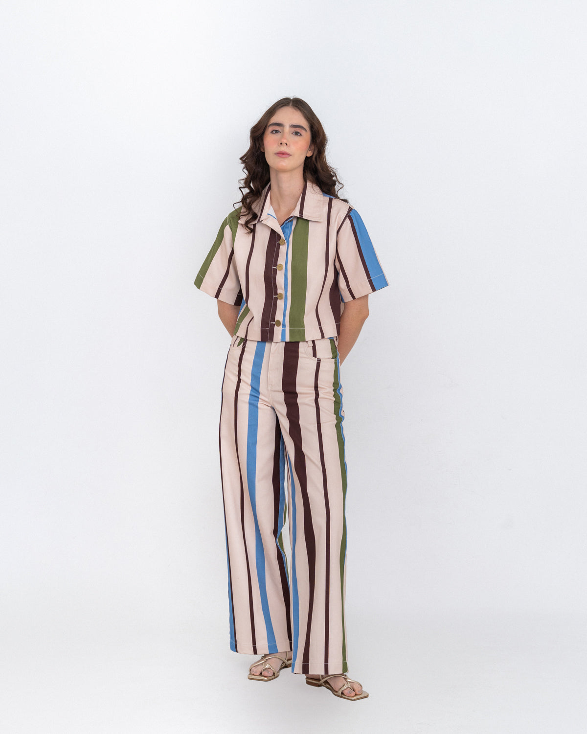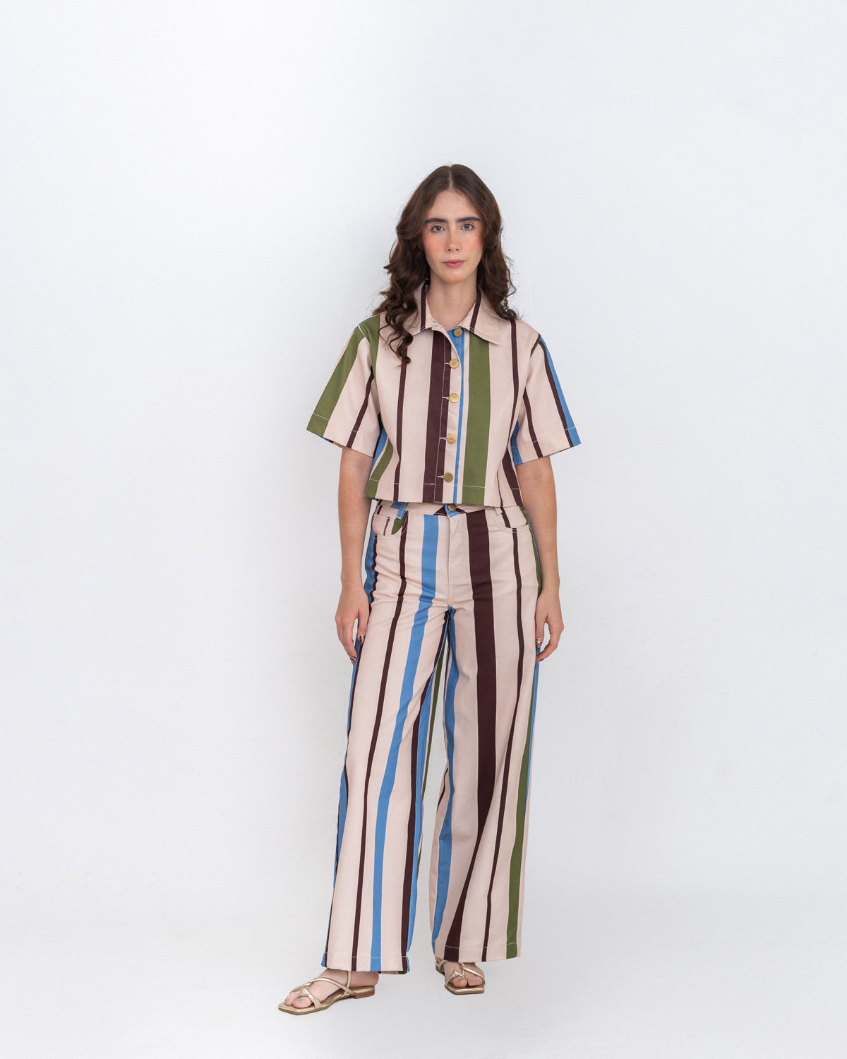 Nuestro Top Block azul/verde destaca por su print en líneas en bloques, de esos que elevan el look sin complicarse. Tiene silueta recta, fit crop, manga corta, cuello y botones en el delantero. Es la pieza perfecta para llevar en set: hace match increíble con el Jean Block azul/verde, pero también funciona con básicos para armar un outfit en segundos.