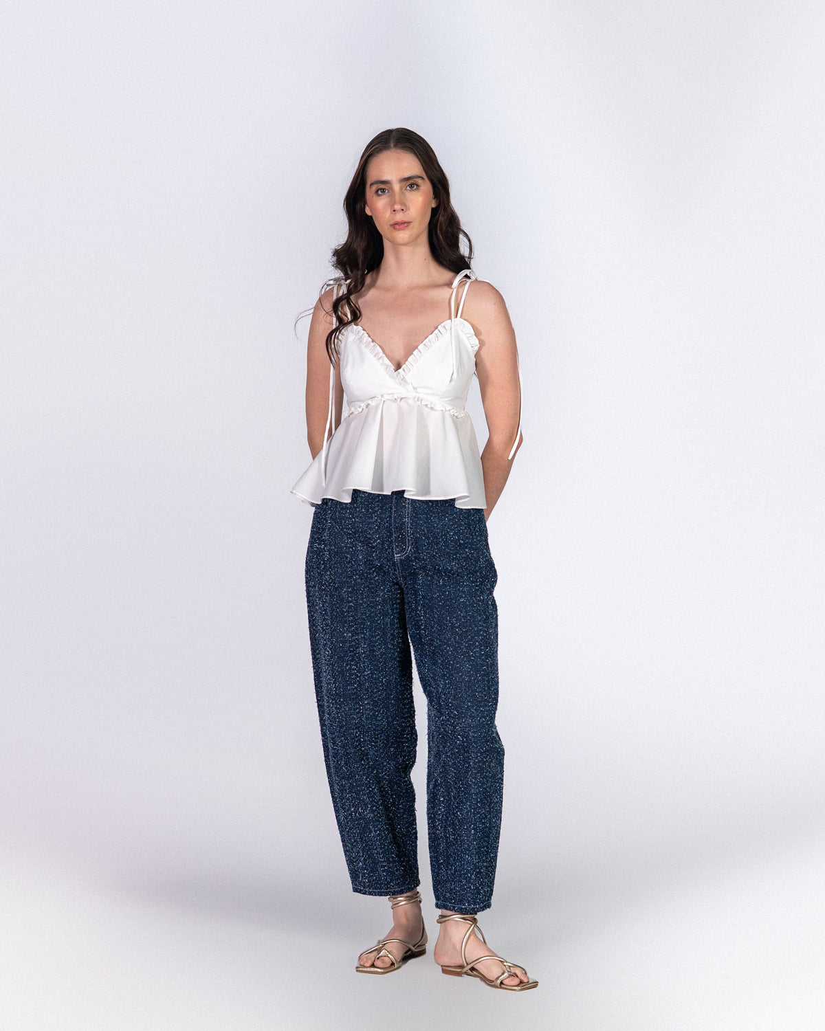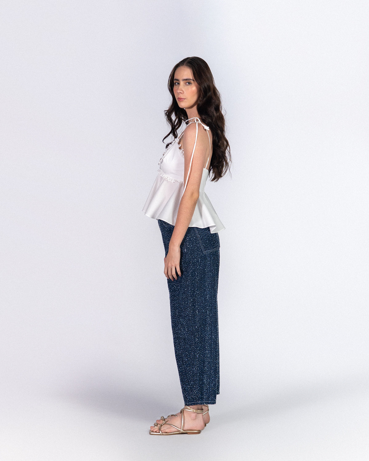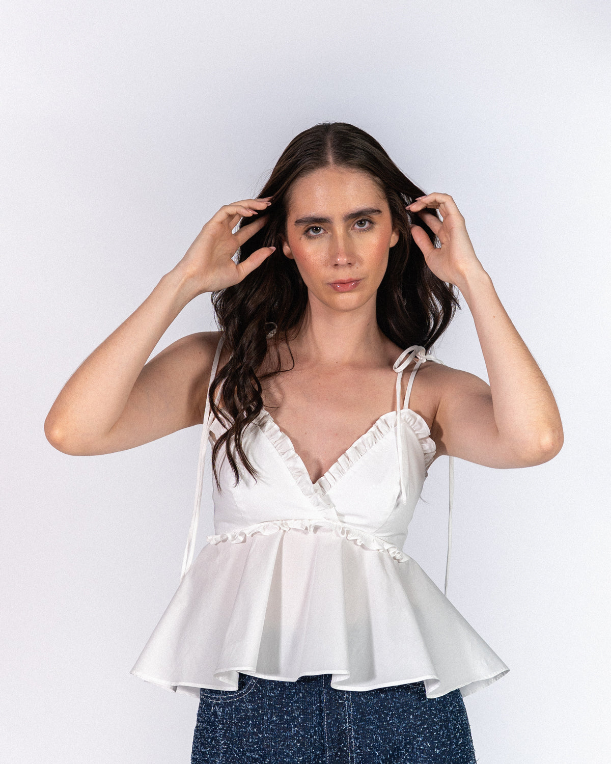 Nuestro Top Candy nieve es una apuesta segura para elevar tu look. Tiene escote profundo, espalda recta, tiras ajustables y cierre con cremallera para un fit perfecto. La silueta peplum hace que un look simple se vea armado en segundos.